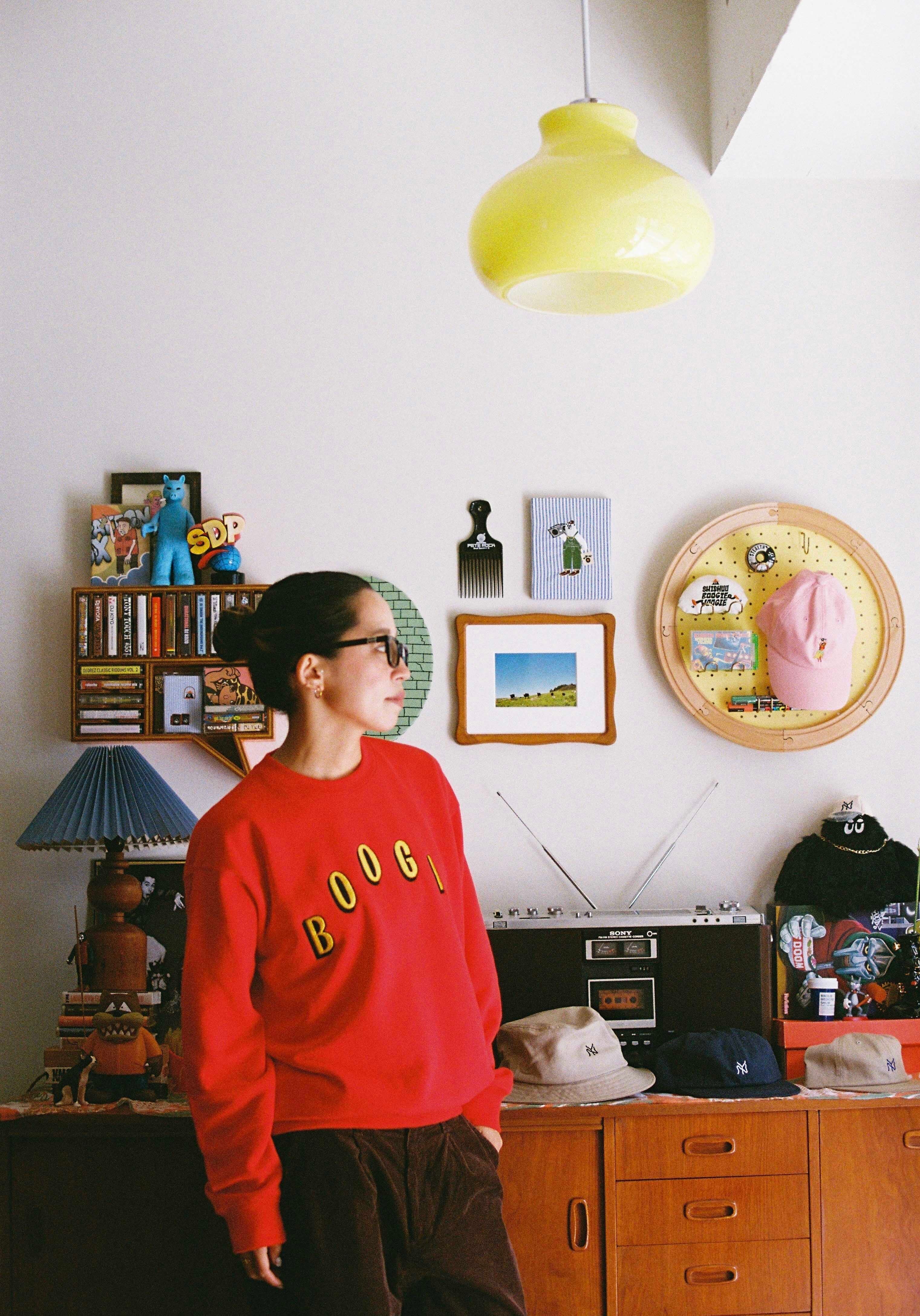 A sweatshirt featuring our original 3D-style embroidered font design. The word “BOOGIE”, a signature of Shishuu Boogie Woogie, is finished in a rounded layout.