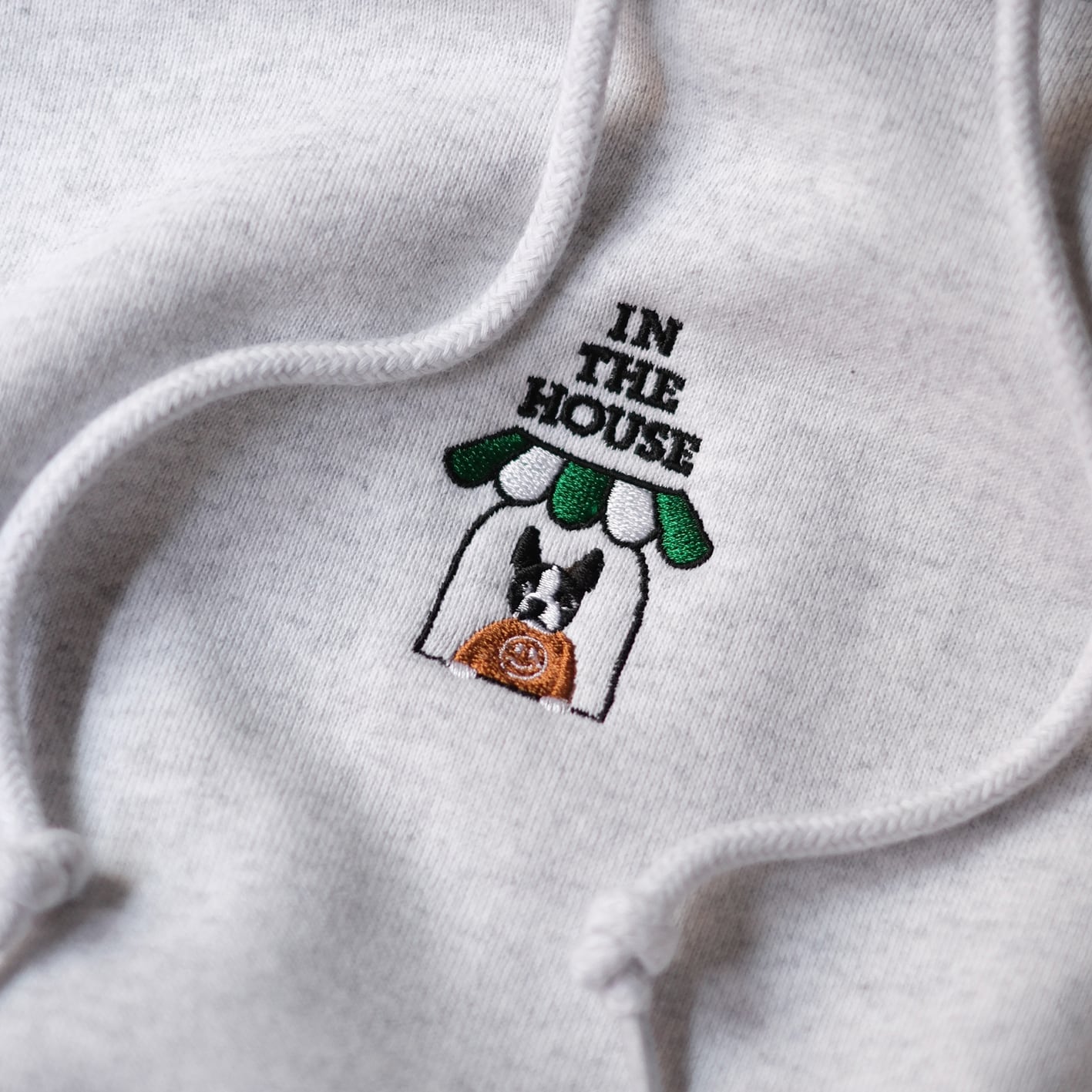 久しぶりのBostonデザイン。シシュウブギウギの店舗に使用しているグリーン&ホワイトのテントをモチーフに窓から除いてるBostonの表情がいい感じで刺繍に仕上げました。しかも片パンチのみんなに朗報な顔の柄も選べたり、しかもパグの顔まで選べるスペシャルオーダーが可能です!しっかりしたヘビーウェイトの15oz生地を使用し、裏起毛で暖かく自然な肩落ちや大きめのアームホールなど、フワッとした生地なので着心地も良く、寒い日でも活躍してくれます。