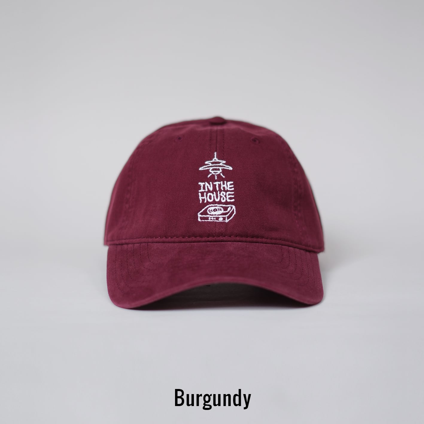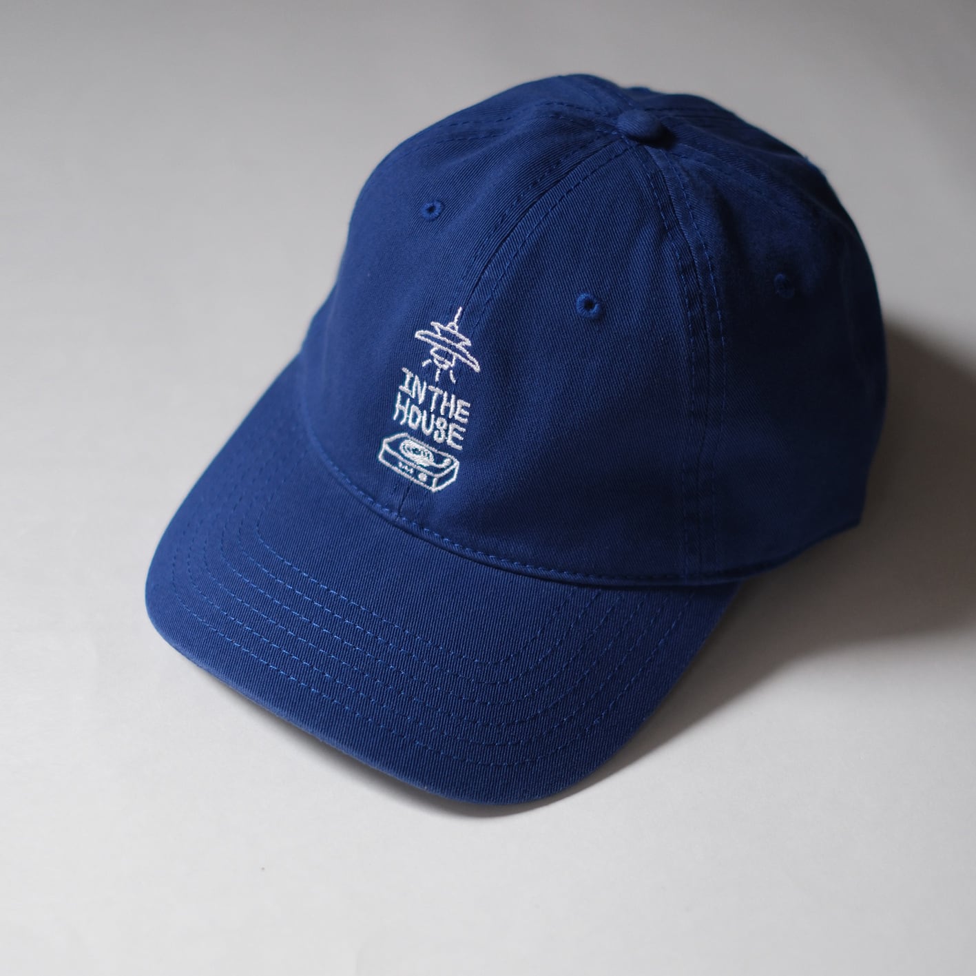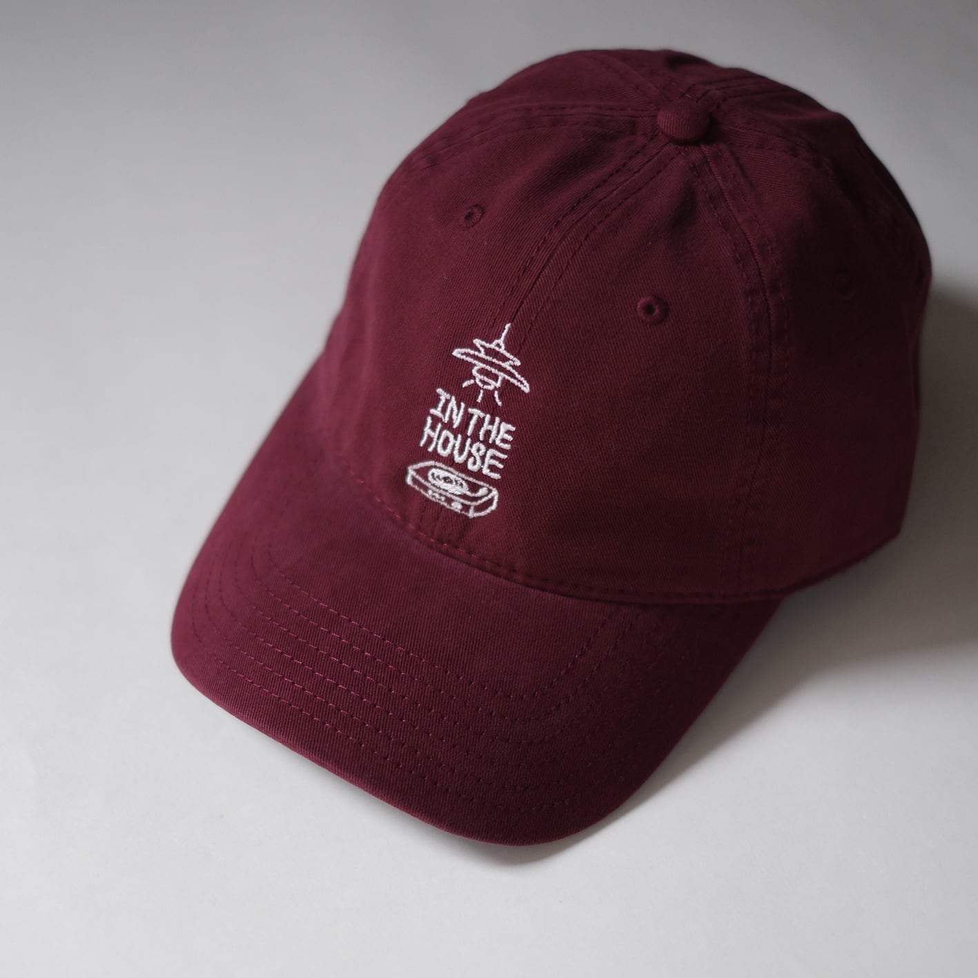 ペンダントランプとレコードプレイヤーが部屋の暖かさを刺繍で表現したIN THE HOUSEのCAP。今や定番となる芯なしラウンドキャップでコットンツイル生地がやわらかく男女とも被り心地は最高。カラーリングはスタイリングのアクセントになるバーガンディーとロイヤルブルーの2色展開。背面のベルトでサイズ調節も可能です。